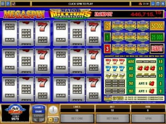 Las combinaciones ganadoras que podrás alinear con MegaSpin son diez y para ganar podrás utilizar el símbolo jolly, representado por las palabras “High 5”, que sustituye cualquier otro símbolo y multiplica de 5 hasta 25 veces tu apuesta.